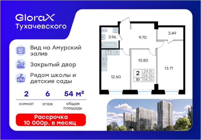 Прямая продажа от застройщика! Жилой Комплекс комфорт-класса. Продаётся 2-к квартира номер 53 общей площадью 61.8 кв.м. на 6-м этаже 30 этажного здания. Отделка Whitebox. Цена с учётом скидки. Особенности квартиры: - Угловая планировка - больше пространства для ваших идей. - Увеличенное количество окон - дополнительное освещение и свежий воздух. - Гостевой санузел - комфорт и удобство для ваших гостей. - Можно оборудовать рабочее место - комфорт для работы и учёбы. - Просторная кухня - место для семейных ужинов и кулинарных экспериментов. - Балкон - открытое пространство для отдыха. Квартира с предчистовой отделкой (White box). Вам не придется заниматься черновыми и трудоёмкими работы, а чистовую отделку и дизайн - сделайте на свой вкус. Информация о комплексе: "Флагман" - современный жилой комплекс для тех, кто ценит комфорт, эстетику и личное пространство. Корпуса, выполненные в едином архитектурном коде, создают выразительный силуэт и формируют гармоничное городское пространство. Современная архитектура от одного из ведущих бюро страны сочетает лаконичность форм и внимание к деталям. Приватные дворы, озеленённые улицы и продуманная инфраструктура делают жизнь здесь по-настоящему комфортной.Благодаря удобному расположению и транспортной доступности, вы легко доберётесь в любую часть города. Транспортная доступность: - 9 мин. пешком до детского сада - 7 мин. до школы - 5 мин. до взрослой поликлиники - 1 мин. до автобусной остановки Внутренняя инфраструктура: Каждая деталь продумана для вашего удобства. Для прогулок и отдыха предусмотрен ландшафтный парк и пешеходный бульвар. Закрытые дворы оснащены детскими и спортивными площадками, а в каждом доме предусмотрены кладовые и колясочные. Комфортные гостевые зоны и зоны ожидания создают атмосферу уюта уже с первых шагов в дом. Все корпуса имеют удобный вход без ступеней и пандусов, обеспечивая лёгкий доступ для жителей любого возраста. Для автомобилистов предусмотрен одноэтажный паркинг с автоматической мойкой, а на первых этажах расположены коммерческие помещения, обеспечивающие повседневные потребности жителей.