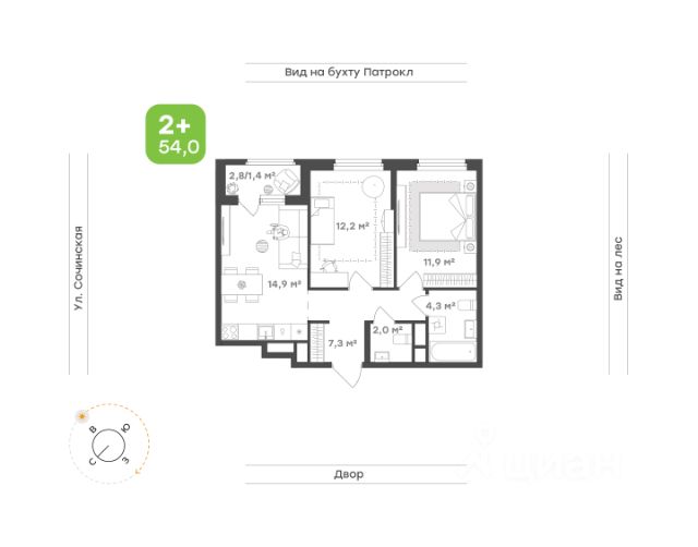 • Квартиры с панорамными видами на бухту Патрокл, маяк Басаргина и остров Русский