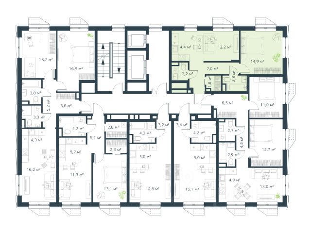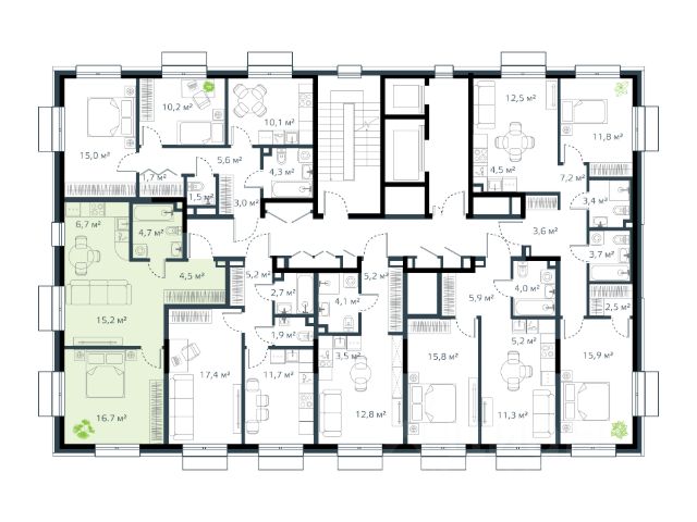 • Планировочные решения под любой жизненный сценарий от 23 до 67 м²