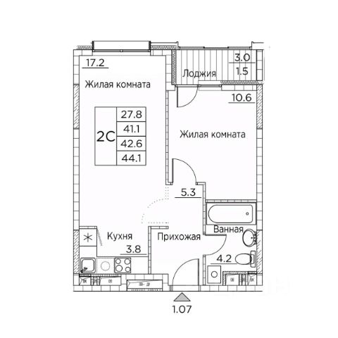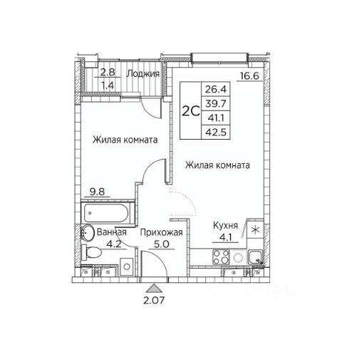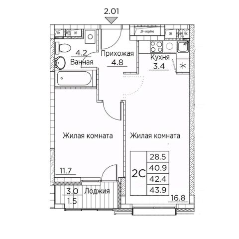 • ✅ Минимальная площадь: 42,5 м²