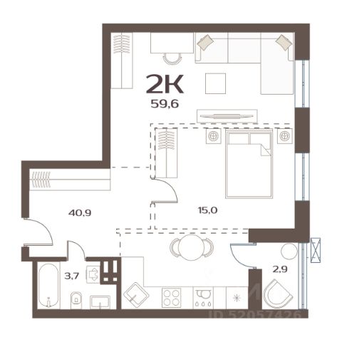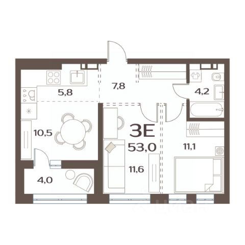 Идеальная квартира для молодой семьи Кухня-столовая 13,7 кв.м для семейных завтраков и ужинов Просторная родительская спальня 14,7 кв.м с выходом на лоджию, где можно наслаждаться свежим воздухом Уютная детская комната 11,3 кв.м для занятий учебой и отдыха Прихожая 4,8 кв.м с местом под шкаф-купе Ванная комната 4 кв.м в удобном расположении для всех членов семьи
