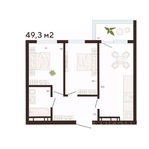 Идеальная квартира для молодой семьи Кухня-столовая 13,7 кв.м для семейных завтраков и ужинов Просторная родительская спальня 14,7 кв.м с выходом на лоджию, где можно наслаждаться свежим воздухом Уютная детская комната 11,3 кв.м для занятий учебой и отдыха Прихожая 4,8 кв.м с местом под шкаф-купе Ванная комната 4 кв.м в удобном расположении для всех членов семьи