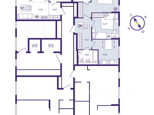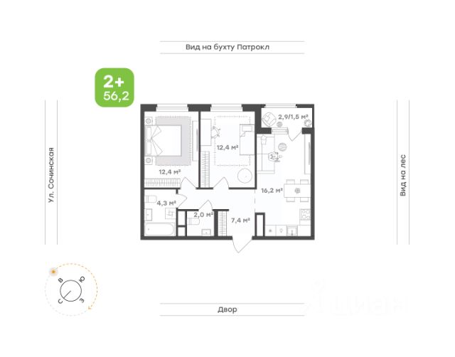 Современный комфорт и продуманная функциональность в каждом уголке Просторная кухня-гостиная станет местом, где по вечерам будет собираться вся семья. Это светлое пространство одновременно разделяет родительскую и детскую зоны, создавая естественную границу для личного уюта Мастер-спальня порадует выделенным местом под систему хранения и собственным санузлом с зоной под душевую кабину. Выход на лоджию с видом на лес создаёт атмосферу романтики, а два окна обеспечивают обилие дневного света Детская комната оборудована местом под шкаф и большим окном, открывающим вид на школу — идеальное пространство для учёбы и игр Дополнительный санузел с ванной и местом под стиральную машину, а также функциональная прихожая с продуманными зонами под системы хранения завершают образ квартиры, делая её настоящим домом для современной семьи