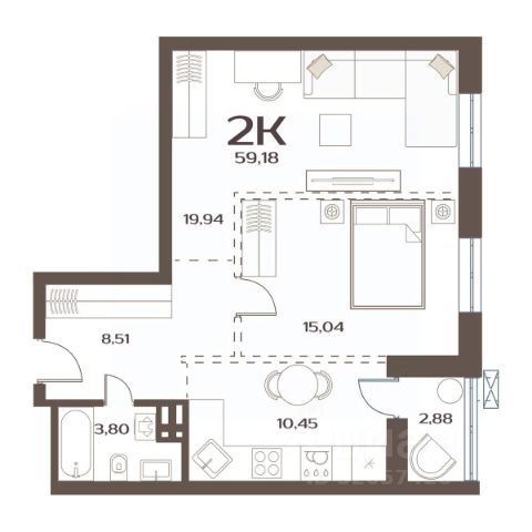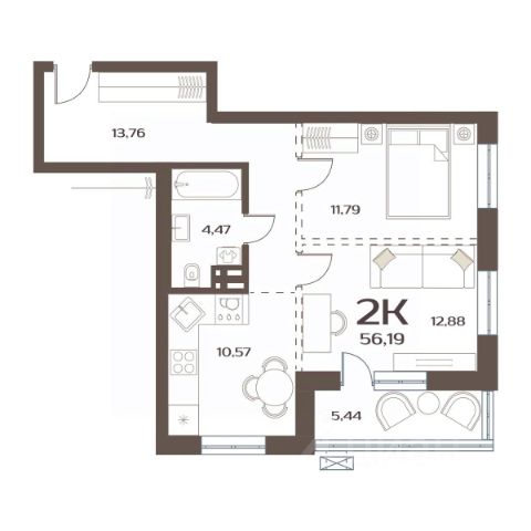 Уютное пространство для самостоятельной жизни Просторная прихожая 5,4 кв.м с местом для шкафа Кухня-столовая 16,7 кв.м место для ваших кулинарных экспериментов и отдыха за домашним кинотеатром Спальня 14,7 кв.м с выходом на лоджию, где можно наслаждаться свежим воздухом и красивым видом на окружающий пейзаж Гардеробная в спальне 2,5 кв.м позволит аккуратно разместить вещи, освободив место в комнате Ванная комната 5,5 кв.м с местом под стиральную машину