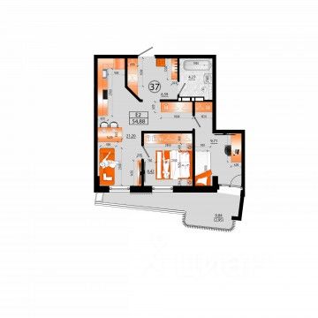 Базовая планировка квартиры - 2 большие комнаты с двумя проходами в каждой. С помощью возведения перегородки можно перепланировать квартиру под нужды любой семьи.
