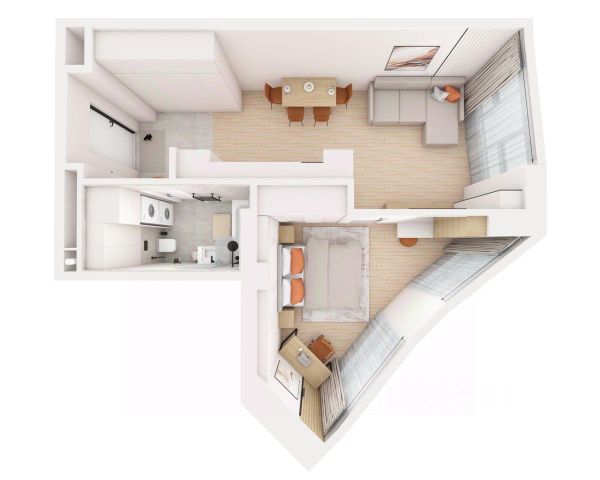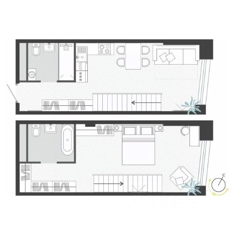 Более 100 уникальных планировочных решений — двухуровневые квартиры, с отдельном входом и патио, с приватными террасами, двухэтажные со вторым светом, функциональные студии, евроформат с кухней гостиной, с рабочим кабинетом и др.
