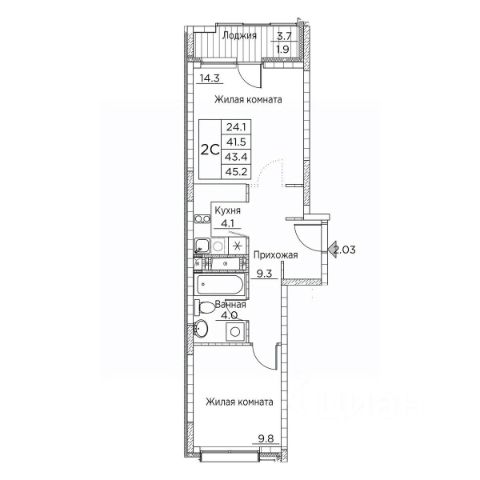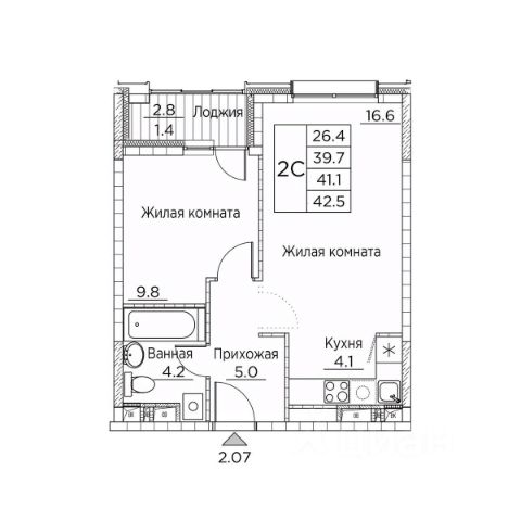 Высота потолков до 4,5 м на первых жилых этажах