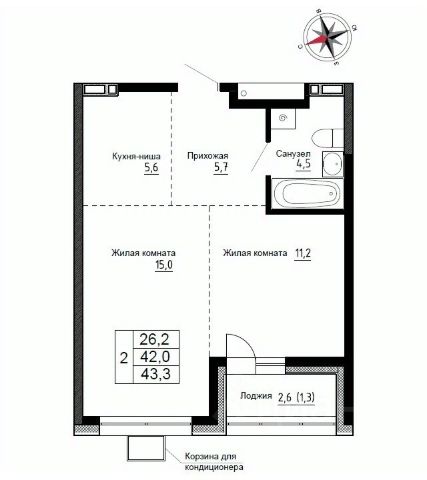 Продаётся 2-комнатная квартира в строящемся доме (Дом 1), срок сдачи: III-кв. 2026, общей площадью 42.5 кв.м., на 13 этаже. ЖК "Новый" - это: 2 дома с авторской архитектурой высотой 13 жилых этажей;Семейные 2-комнатные квартиры улучшенной планировки;Витражное остекление лоджий; 2 скоростных бесшумных лифта в каждом доме;Кладовые на нижних этажах;Открытая автостоянка;Благоустроенный двор;Современные системы безопасности и пожаротушения;Централизованное отопление;Индивидуальные счетчики на тепло и воду в каждой квартире.Уединенный семейный квартал, расположенный в живописном уголке экологически чистого района посёлка Новый. Здесь дома окружены небольшим лесным массивом, что создает особую атмосферу уюта и комфорта. Вся необходимая инфраструктура в шаговой доступности. ЖК "Новый" отличается гармоничной архитектурой, которая вписывается в окружающую природную среду. Большое значение уделено концептуальному благоустройству дворовой территории, чтобы жители могли наслаждаться не только красивыми видами, но и комфортным пространством для отдыха и досуга. Безопасность, современные входные группы и многообразие планировочных решений - всё это жилой комплекс "Новый".