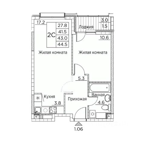 Базовая планировка квартиры - 2 большие комнаты с двумя проходами в каждой. С помощью возведения перегородки можно перепланировать квартиру под нужды любой семьи.