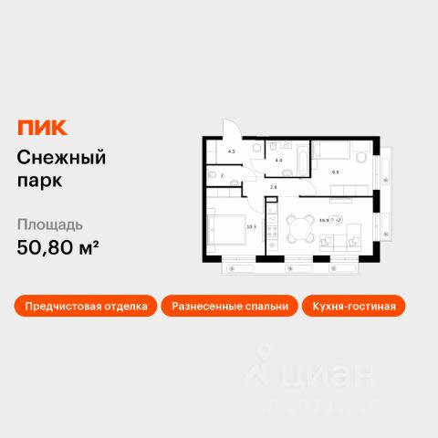 Продаётся 2-комн. квартира площадью 49,5 кв.м на 6 этаже 25 этажного дома (Корпус 3, Секция 1) проекта ПИК Снежный парк. Светлый просторный подъезд на уровне земли, функциональная планировка, большие окна, предчистовая отделка. Жилой квартал "Снежный парк" возводится в развитом микрорайоне Владивостока - Снеговой Пади. Рядом уже есть всё для комфортной жизни: 2 школы, детская и взрослая поликлиники, торговый центр и магазины. Проект будет состоять из 7 корпусов, высота которых от 24 до 29 этажей. Благодаря низкой плотности застройки жители будут чувствовать себя комфортно. За счёт переменной этажности в квартиры будет попадать ещё больше естественного света. Из окон последних этажей будет открываться панорамный вид на Амурский залив и лес. В квартирах предусмотрены большие окна, застеклённые балконы и лоджии - будет светло и уютно даже зимой. В жилом квартале появится уникальное общественное пространство с пешеходным бульваром и зонами для отдыха. На первых этажах откроются кафе, магазины и полезные сервисы, куда можно спуститься за горячим кофе или свежеиспечённым хлебом. Из каждого дома будет выход в уютный двор-парк с современными детскими и спортивными площадками. Здесь мы посадим цветы и деревья: будет приятно отдыхать или почитать книгу. Артикул 785552 (Застройщик ООО "СЗ ФОРМУЛА-ДВ") Продается 2-комнатная квартира в микрорайоне Снеговая падь в городе Владивосток.