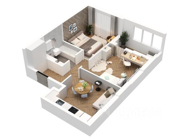 Уютное пространство для самостоятельной жизни Просторная прихожая 5,4 кв.м с местом для шкафа Кухня-столовая 16,7 кв.м место для ваших кулинарных экспериментов и отдыха за домашним кинотеатром Спальня 14,7 кв.м с выходом на лоджию, где можно наслаждаться свежим воздухом и красивым видом на окружающий пейзаж Гардеробная в спальне 2,5 кв.м позволит аккуратно разместить вещи, освободив место в комнате Ванная комната 4,5 кв.м с местом под стиральную машину