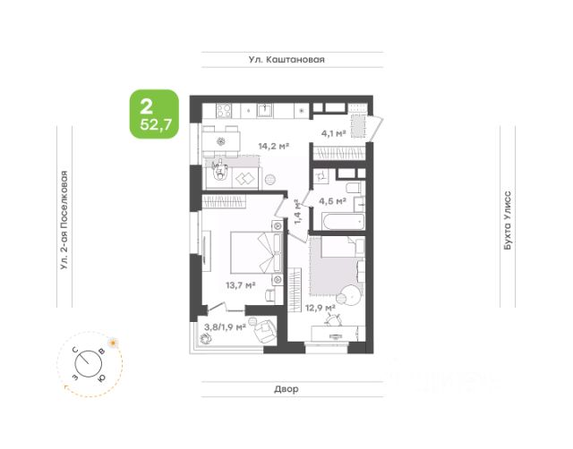 Хорошо развитая инфраструктура района: в шаговой доступности несколько школ, детские сады, магазины РЕМИ, Винлаб, Дилан, ТЦ Игнат, ТЦ Первореченский и др., Покровский парк, Центр детского юношеского творчества, кинотеатр Москва, почта, аптеки, городская клиническая больница, пляж на мыс Кунгасный, остановки автобуса и электрички. 10 минут на машине до центра города, СК Олимпиец и набережной.