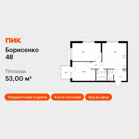 Продаётся 2-комн. квартира площадью 43,9 кв.м на 26 этаже 28 этажного дома (Корпус 2, Секция 2) проекта ПИК Борисенко 48. Светлый просторный подъезд на уровне земли, функциональная планировка, большие окна, предчистовая отделка. "Борисенко 48" - небольшой квартал в Первомайском районе, в 15 минутах пути на автомобиле от центра Владивостока. С верхних этажей откроется живописный вид на город и сопки. В проекте всего четыре дома и подземный паркинг, в который можно будет спуститься на лифте. Высота домов от 17 до 30 этажей - благодаря переменной этажности солнце будет лучше освещать двор и квартиры. На первых этажах откроются пекарни, кафе, магазины и другие сервисы - это удобно, когда внезапно закончится хлеб или захочется побаловать себя горячим кофе. Из каждого дома будет выход в уютный двор-парк - это закрытая территория для отдыха, где растут цветы и деревья, оборудованы детские и спортивные площадки. Рядом с "Борисенко 48" появится также детский сад для 150 малышей. В пешей доступности есть всё необходимое для комфортной жизни: школы, детские сады, поликлиника и магазины. До крупных торговых центров "Калина Молл" и "Луговая", а также супермаркета "Реми" - всего 5 минут на машине. А до озера на Сафонова, которое отлично подходит для прогулок и отдыха, можно дойти пешком за 9 минут. Живописная Леопардовая набережная - в 10 минутах на автомобиле. Из квартала можно будет выехать как на улицу Борисенко, так и на улицу Сафонова. Артикул 919466 (Застройщик ООО "СЗ "Юстина") 2-комнатная квартира на улице Борисенко в городе Владивосток.