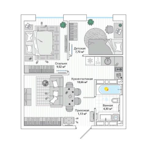 Строим Владивосток, каким он должен быть В чем уникальность R4? Мультиформатный жилой квартал с общей премиальной инфраструктурой В жилом квартале есть жилье разного уровня - от практичного "комфорта" и "комфорт-плюс" до квартир класса "бизнес" и даже "премиум". Поэтому архитектура, инженерное наполнение, благоустройство... вообще каждая деталь квартала, от детских площадок до отделки мест общего пользования - всё соответствует высоким требованиям покупателей. Но это общая инфраструктура. Доступная любому резиденту квартала, независимо от выбранной им квартиры. Рядом с кварталом R4 расположены новейшие жилые комплексы. Старого жилья там просто нет, каждый дом "с иголочки". Новые гладкие автодороги, торговые центры, детские сады и школы. Несмотря на обособленность территории, Зеленый угол обеспечивает легкий доступ ко всей инфраструктуре Владивостока. 2 минуты до детского сада 15 минут до Золотого моста 20 минут до ЖД вокзала 20 минут до Русского моста 45 минут до аэропорта Преимущества Прогрессивная архитектура, разработанная под ландшафт и рельеф участка Удобная и безопасная система передвижения внутри жилого квартала, минуя автомобильный трафик. Дети и взрослые не пересекают дорогу Собственный закрытый парк для жителей квартала "Дворы без машин", гриль-зоны, спортивные и детские площадки Соседский центр с кафе только для жителей квартала Две эксплуатируемые кровли, лаунж-зоны, коворкинг для жителей квартала Более 100 уникальных планировочных решений — двухуровневые квартиры, с отдельном входом и патио, с приватными террасами, двухэтажные со вторым светом, функциональные студии, евроформат с кухней гостиной, с рабочим кабинетом и др. Лобби с приятным дизайном и атмосферой дома Подземный паркинг, кладовые, колясочные и велосипедные Панорамные окна - увеличенные проемы, низкие подоконники Высота потолков до 4,5 м на первых жилых этажах Три варианта отделки: черновая, предчистовая и полный ремонт Автоматизированные системы учета коммунальных услуг Доступ к видеокамерам для всех жильцов квартала Собственная автомойка в жилом квартале 24/7 Подземный паркинг с лифтом до квартиры 2-комнатная квартира на улице Нейбута в городе Владивосток.
