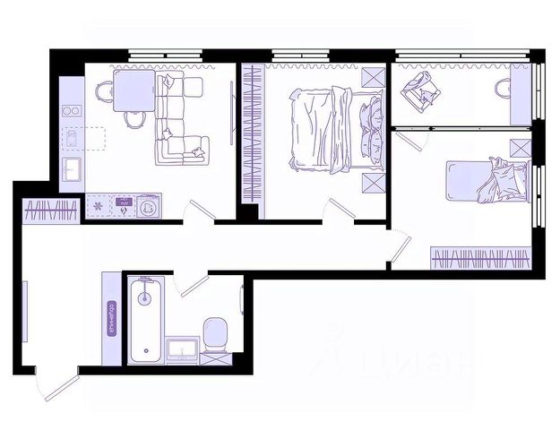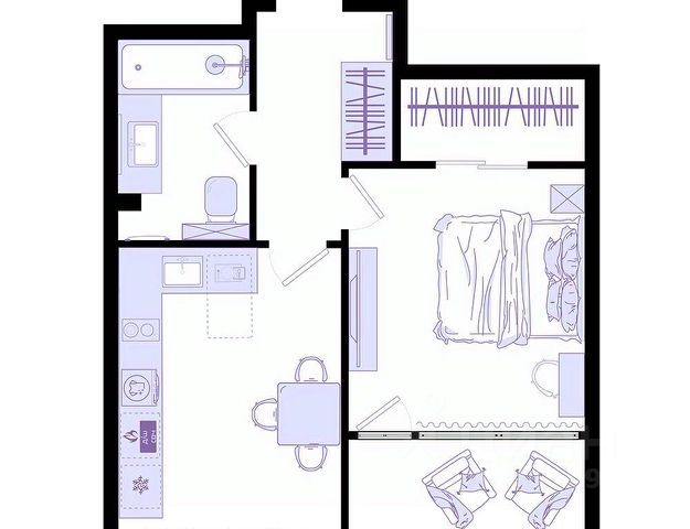 Уютное пространство для самостоятельной жизни Просторная прихожая 5,4 кв.м с местом для шкафа Кухня-столовая 16,7 кв.м место для ваших кулинарных экспериментов и отдыха за домашним кинотеатром Спальня 14,7 кв.м с выходом на лоджию, где можно наслаждаться свежим воздухом и красивым видом на окружающий пейзаж Гардеробная в спальне 2,5 кв.м позволит аккуратно разместить вещи, освободив место в комнате Ванная комната 5,5 кв.м с местом под стиральную машину