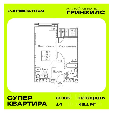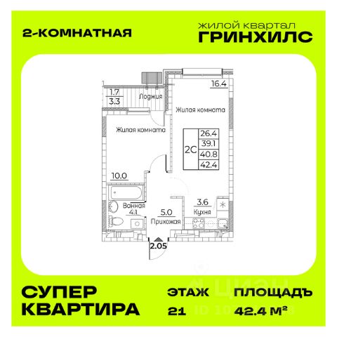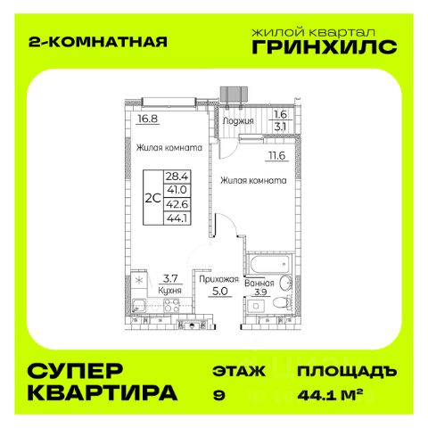 Продается 2-к квартира с черновой отделкой в ЖК "Гринхилс". Общая площадь квартиры — 42.4 кв. м, этаж 4 из 23. Тип дома — монолитный. Цена указана при 100% оплате. ЖК "Гринхилс" — жилой квартал комфорт-класса в выгодной локации микрорайона Зеленый угол: развивающегося современного жилого кластера во Владивостоке, внутри которого реализуются проекты нового поколения, преобразуя город. Полный набор необходимой инфраструктуры, транспортная доступность, исторические места города в шаговой доступности, а также окружение леса — все это и есть современный Зеленый угол. ТРАНСПОРНАЯ ДОСТУПНОСТЬ - 15 минут до центра; - 17 минут до ж/д вокзала; - 10 мин до пляжа Патрокл*; - 30 минут до автовокзала; - 50 минут до аэропорта. *В конце 2025 года планируется ввод дороги, соединяющей район с объездной Седанка-ДеФриз-Патрокл. ПЛАНОВЫЙ ВВОД В ЭКСПЛУАТАЦИЮ - 1 корпуса — 2 квартал 2026 года; - 2 и 3 корпусов — 2 квартал 2027 года. АРХИТЕКРУРНЫЕ И ИНЖЕНЕРНЫЕ РЕШЕНИЯ, ПОВЫШАЮЩИЕ КАЧЕСТВО ЖИЗНИ - Приватный безопасный каскадный двор-парк площадью более 4000м2, спроектирован как отдельный архитектурный объект с зонами, включающими в себя целый комплекс оборудования для детей и взрослых, озеленением и современным освещением, благодаря которому будет приятно гулять и отдыхать во дворе в вечернее и ночное время; - Доступ на территорию всего ЖК только для вас и ваших гостей; - Видеонаблюдение по периметру всего ЖК, безбарьерный доступ в дом с обеих сторон и современная домофония; - Дизайнерская отделка мест общего пользования, чтобы было приятно каждый раз, когда приходишь к себе домой; - Предусмотрено место для консьержа, а также туалеты на первых этажах для вашего комфорта; - Колясочные и три современных лифта c прямым доступом к индивидуальным кладовым и паркингу; - Трехэтажный приватный паркинг в 3-м корпусе: широкие проезды, индивидуальные машиноместа, безопасное и комфортное хранение вашего автопарка. МНОЖЕСТВО ПЛАНИРОВОЧНЫХ РЕШЕНИЙ И ВАРИАНТОВ ОТДЕЛКИ - Студии, 1к, 2к, 3к, 4к и квартиры евро-формата спроектированных по стандарту "Эргом2етрика", учитывающие различные сценарии жизни. Для вашего удобства для каждого варианта планировки вы можете выбрать подходящую готовности квартиры: - Без отделки; - Без отделки с выполненной стяжкой пола; - Whitebox — квартира, готовая к декорированию: стены подготовлены дя отделки, проведена электрика с учетом рекомендаций по расстановке мебели и бытовой техники, выровнен пол, в каждой квартире установлена взломостойкая входная дверь; - Whitebox plus — квартира, готовая к декорированию, в которой выполнена полностью отделка санузла; - Квартира с полностью готовой современной отделкой в светлых тонах. Во всех квартирах лоджии имеют панорамное остекление. Для вашего удобства в 1м корпусе открыт демонстрационный этаж, где вы сможете вживую увидеть все варианты отделок квартир. Записывайтесь на показ по контактам в этом объявлении.