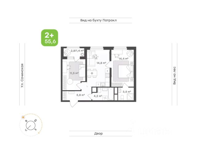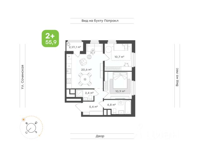 Отдельное личное пространство для времяпрепровождения каждого члена семьи Коридор 9,1 кв.м. с пространством под хранение вещей с двух сторон Кухня-гостиная 17,8 кв.м. с выходом на балкон, для отдыха и встреч рассветов всей семьёй Детская комната 10,5 кв.м. с зонами для хранения и комфортной учёбы ребёнка Санузел 5,2 кв.м. для комфорта всей семьи Спальня 10,9 кв.м. для отдыха с пространством под обустройство рабочего места