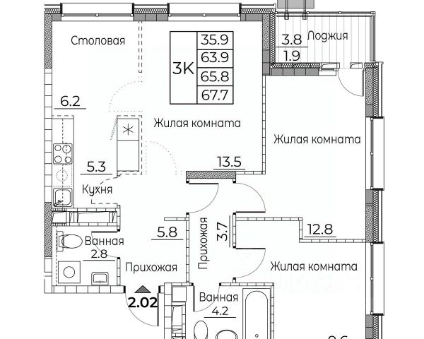 DNV-06-02-012-001-106 Просторная 3-комнатная квартира евроформата с повышенной инсоляцией в жилом комплексе "ДОМ на Востоке". Общая площадь 65,0 м2. Срок сдачи 3 кв. 2027 г. Монолитный дом. "ДОМ на Востоке" жилой квартал с авторской архитектурой от известного бюро KAMEN, благоустроенной территорией и собственной развитой инфраструктурой. Это флагманский проект от государственного застройщика ДОМ.РФ Девелопмент, расположенного в сердце живописной бухты Патрокл. Проект находится в перспективном, быстроразвивающемся районе города со всей инфраструктурой на берегу залива. Всего 8 минут пешком и вы на Леопардовой набережной совершаете променад или любуетесь завораживающими закатами и рассветами. До центра города и крупных торговых центров легко добраться за 20 минут на автомобиле. Преимущества квартиры - Современная планировка евроформата - Высокий потолок 2,9 м - 2 санузла - Повышенная инсоляция 2 окна в спальне, 2 окна в кухне-гостиной - Гардеробная комната - Две корзины для кондиционеров Отделка: Квартира сдается в черновой отделке. Инфраструктура На первых этажах домов будет все необходимое для жизни: магазины, кафе, аптеки, салоны красоты и многое другое. А для семей с детьми предусмотрены детские сады, безопасные игровые площадки и игровые комнаты. Паркинг: подземный отапливаемый с видеонаблюдением Для удобства жителей комплекса предусмотрен теплый паркинг в доме. Теперь не придется искать место для парковки, а также чистить автомобиль от снега или долго прогревать его в холодное время года. В паркинге также расположены кладовые помещения для хранения сезонных вещей и спортивного инвентаря. Условия покупки Продажа от надёжного государственного застройщика ДОМ.РФ Девелопмент с использованием эскроу-счетов. 100% оплата или ипотека. Сейчас действуют особые предложения по льготной ипотеке на период строительства.
