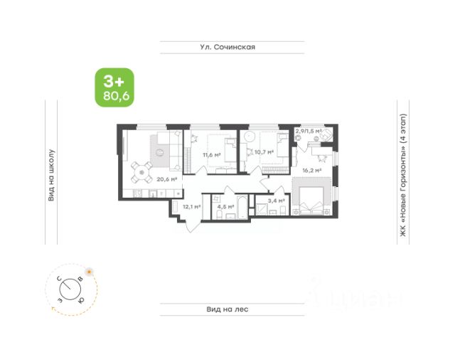 Просторная, светлая квартира, где каждый член семьи найдёт себе место Кухня-гостиная — сердце квартиры, где удобно собираться всей семьёй по вечерам, устраивать ужины и тёплые посиделки с друзьями Спальня — уединённое пространство с удобным местом для хранения и выходом на лоджию. Здесь можно просыпаться с видом на школу, наслаждаясь утренним светом и свежим воздухом Две спальни подойдут для детей, гостей или рабочего кабинета. Светлые, просторные и уютные — они легко адаптируются под любые задачи Санузел с ванной и выделенным местом под стиральную машину сделает утренние сборы ещё комфортнее, а вечернее расслабления более умиротворяющим Коридор с местом под гардеробную связывает все комнаты, обеспечивая удобную навигацию и создавая ощущение целостности пространства Прихожая с отдельным санузлом — вместительная и продуманная. Здесь предусмотрено удобное место для хранения, которое поможет избежать загромождённости и сохранить порядок
