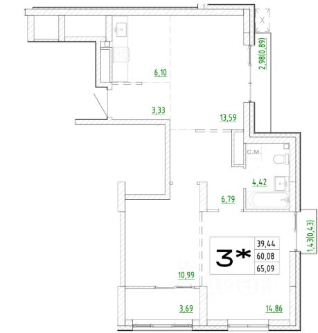 Продаётся 3-комнатная квартира в строящемся доме (Дом 1), срок сдачи: III-кв. 2027, общей площадью 65.09 кв.м., на 13 этаже. Новый жилой комплекс "Архитектор" от группы компаний "Девелопмент-Юг" расположен по адресу: г. Владивосток, по ул. Бежецкая.