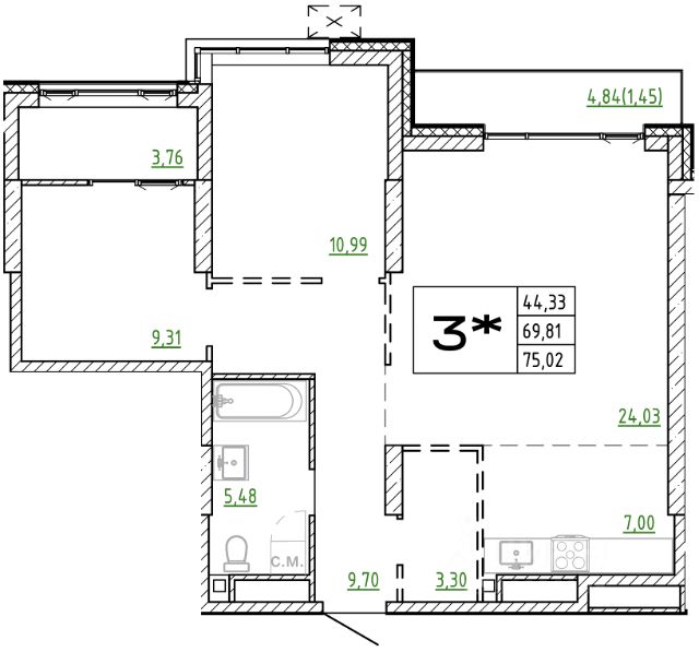 Продаётся 3-комнатная квартира в строящемся доме (Дом 1), срок сдачи: III-кв. 2027, общей площадью 75.02 кв.м., на 13 этаже. Новый жилой комплекс "Архитектор" от группы компаний "Девелопмент-Юг" расположен по адресу: г. Владивосток, по ул. Бежецкая.
