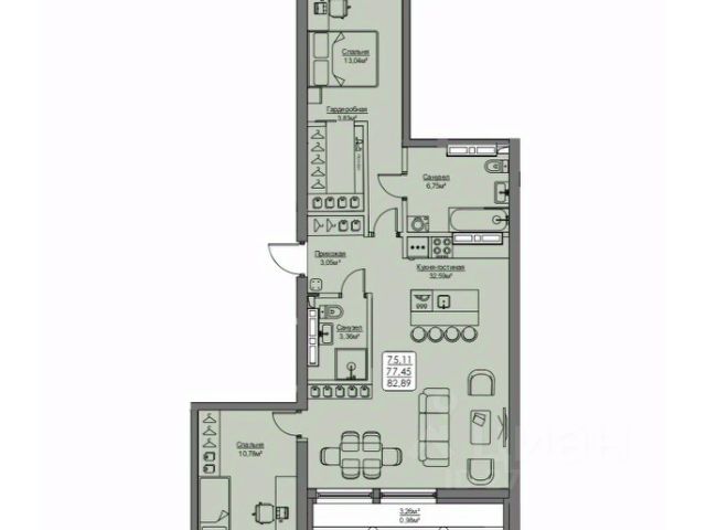 Уютное пространство для самостоятельной жизни Просторная прихожая 5,5 кв.м с местом для шкафа Кухня-столовая 16,8 кв.м место для ваших кулинарных экспериментов и отдыха за домашним кинотеатром Спальня 14,8 кв.м с выходом на лоджию, где можно наслаждаться свежим воздухом и красивым видом на окружающий пейзаж Гардеробная в спальне 2,8 кв.м позволит аккуратно разместить вещи, освободив место в комнате Ванная комната 4,5 кв.м с местом под стиральную машину