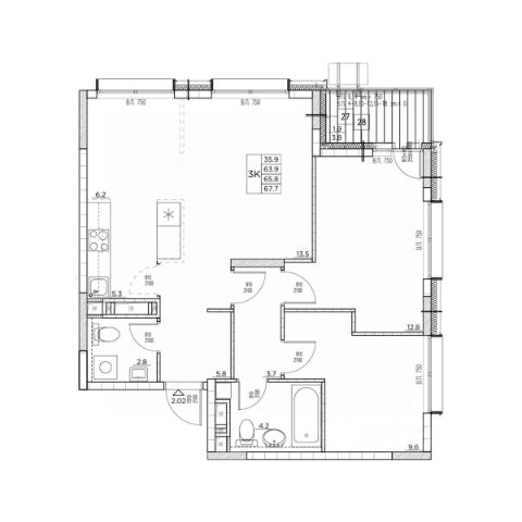 Продаётся 3-комнатная квартира в строящемся доме (Дом 1), срок сдачи: III-кв. 2029, общей площадью 55 кв.м., на 14 этаже. Новый жилой комплекс от Специализированного застройщика "Пегас" расположен по адресу: г. Владивосток, по ул. Луговая.