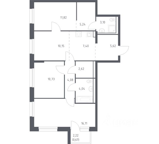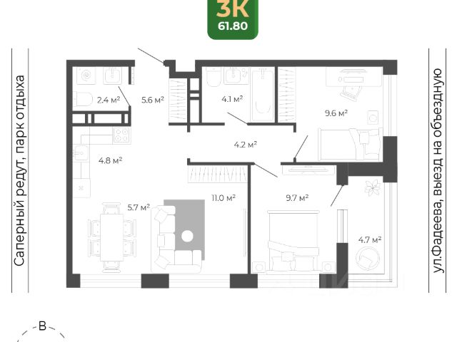 внушительный выбор функциональных и просторных планировочных решений, предусматривающих возможность самостоятельного зонирования площади и реализации любых дизайнерских решений в соответствии с индивидуальными потребностями семьи, доступны варианты недвижимости с 2 санузлами;