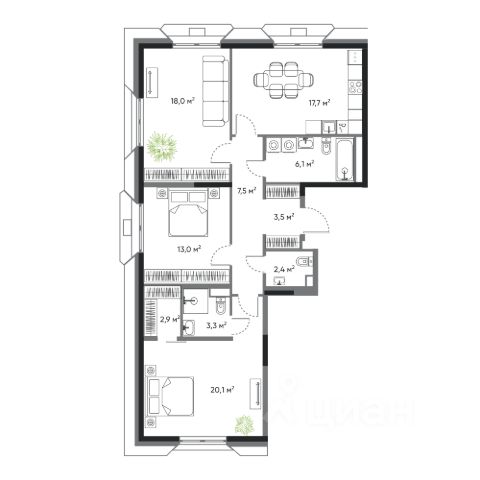 Старт продаж! Первый клубный дом на Патрокле! ID: DNV-08-1.1-02-003-003 Современная 3 комнатная квартира классического формата в жилом комплексе "ДОМ на Востоке". Срок сдачи IV кв. 2027. "ДОМ на Востоке" жилой квартал с авторской архитектурой от известного бюро KAMEN, благоустроенной территорией и собственной развитой инфраструктурой. Это флагманский проект от государственного застройщика ДОМ.РФ Девелопмент, расположенный в сердце живописной бухты Патрокл. Проект находится в перспективном, быстроразвивающемся районе города со всей инфраструктурой на берегу залива. Всего 8 минут пешком и вы на Леопардовой набережной совершаете променад или любуетесь завораживающими закатами и рассветами. До центра города и крупных торговых центров легко добраться за 20 минут на автомобиле. Особенности квартиры: • мастер-спальня с отдельным санузлом и просторной гардеробной; • светлая квартира с 6 окнами; • 8 этажей в доме; • 4 квартиры на этаже; • высокие потолки 3,9 м. Квартира сдается без отделки: квартира с входной дверью, окнами, гидроизоляцией пола в мокрых зонах, водопроводом с канализацией, радиаторами, подведенным электричеством с установленным щитком механизации и автоматами. На первых этажах домов будет все необходимое для жизни: магазины, кафе, аптеки, салоны красоты и многое другое. А для семей с детьми предусмотрены детские сады, безопасные игровые площадки и игровые комнаты. Для удобства жителей комплекса предусмотрен подземный отапливаемый паркинг с видеонаблюдением. Теперь не придется искать место для парковки, а также чистить автомобиль от снега или прогревать его в холодное время года. В паркинге также расположены кладовые помещения для хранения сезонных вещей и спортивного инвентаря. Продажа от надёжного государственного застройщика ДОМ.РФ Девелопмент с использованием эскроу-счетов. Различные варианты финансирования покупки: льготные программы ипотеки, рассрочка, 100% оплата. Уточняйте текущие акции у менеджеров жилого комплекса!