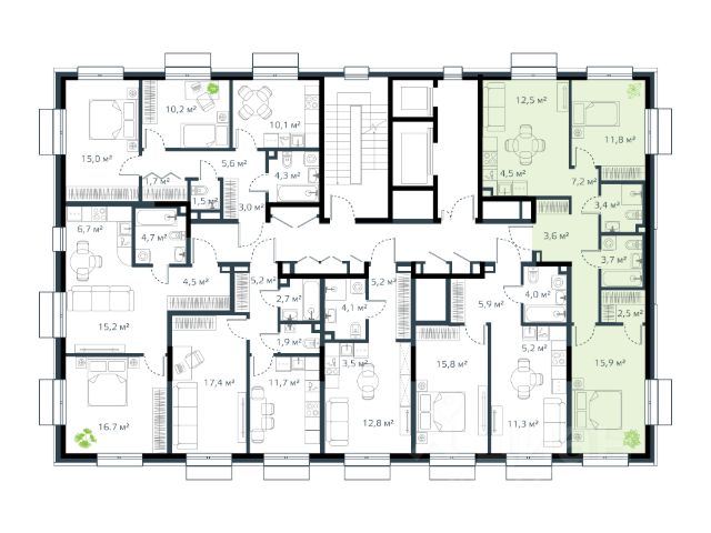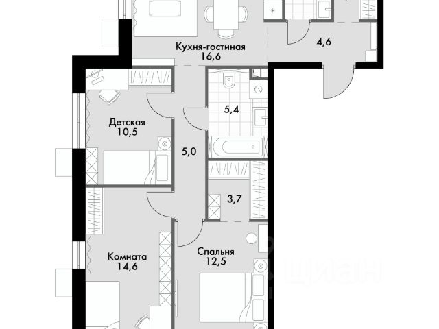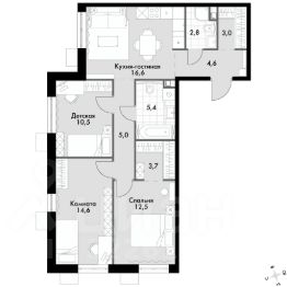 - Простор и свет: Раздельные комнаты с удачным соотношением длины и ширины (почти квадрат), высокие потолки (2.5 м) и ориентация окон на запад и восток наполняют комнаты светом и воздухом.