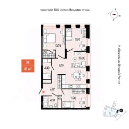 высокая транспортная доступность, расположение в непосредственной близости от главной дорожной развязки Второй речки "Автовокзал Кольцо Багратиона, Проспект 100-летия Владивостока Фабрика Заря" (350 м);