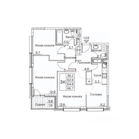 • ✓ В базе Циан 3 3-комнатных квартир на 8 этаже в микрорайоне 64, 71 в городе Владивосток