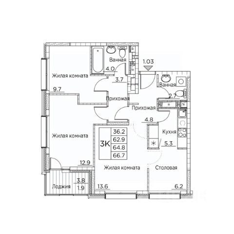 • ✅ Минимальная площадь: 67,4 м²
