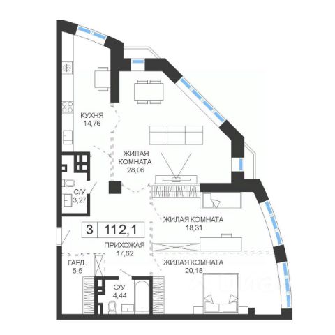 Уютное пространство для самостоятельной жизни Просторная прихожая 5,5 кв.м с местом для шкафа Кухня-столовая 16,8 кв.м место для ваших кулинарных экспериментов и отдыха за домашним кинотеатром Спальня 14,8 кв.м с выходом на лоджию, где можно наслаждаться свежим воздухом и красивым видом на окружающий пейзаж Гардеробная в спальне 2,8 кв.м позволит аккуратно разместить вещи, освободив место в комнате Ванная комната 4,5 кв.м с местом под стиральную машину