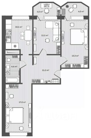 Для большой семьи, которая ценит комфорт и уют Прихожая 4,9 кв.м с местом для гардеробной Просторная кухня-столовая 21,5 кв.м идеально подходит для приготовления пищи, уютных семейных завтраков и совместных просмотров фильмов Родительская спальня с выходом на лоджию создаст романтическую атмосферу для вечерних посиделок Детская комната 9,7 кв.м для сына, чтобы вдохновлять и позволять ему развиваться, играть и расти Детская 10,8 кв.м для дочери - место для игр и творчества Две ванные комнаты обеспечивают удобство и экономию времени всей семьи