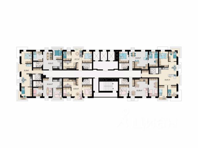 Широкоформатные квартиры свободной планировки формата Smart-vision площадью от 39,56 кв. м до 81,9 кв. м позволяют реализовать любые планировочные решения, а эркерные окна увеличенного размера открывают головокружительный вид на Амурский залив, низководный мост и завораживающий лесной массив. Проектом предусмотрены широкие коридоры мест общего пользования 2,4 м, просторный лифтовой холл площадью 37 кв. м и вестибюль 15,68 кв. м.