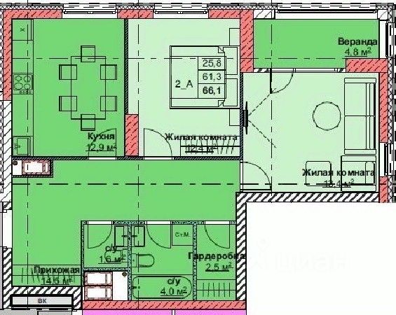 евро-трехкомнатная квартира.