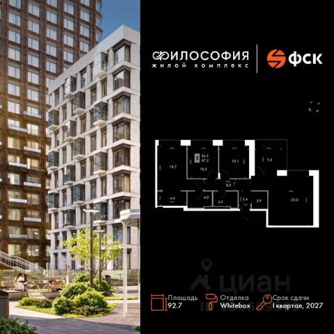 Прямая продажа от застройщика! Жилой Комплекс бизнес-класса. Продаётся 3-к квартира номер 116 общей площадью 92.7 кв.м. на 14-м этаже 14 этажного здания. Отделка Whitebox. Цена с учётом скидки. Особенности квартиры: - Мастер-зона с санузлом и гардеробной. Всё для вашего комфорта и удобства, включая личный санузел и гардероб. - Линейная планировка - максимальная функциональность и удобство. - Постирочная с возможностью установки сушилки - удобство для ежедневных дел. - Просторная мягкая зона - комфорт и уют для отдыха всей семьи. - Кухня-гостиная - идеальное пространство для встреч с близкими. - Гардеробная - удобство для хранения и организации вещей. - Терраса - место для загара и вечерних посиделок. Квартира с предчистовой отделкой (White box). Вам не придется заниматься черновыми и трудоёмкими работы, а чистовую отделку и дизайн - сделайте на свой вкус. Информация о комплексе: В самом центре Владивостока рождается "Философия" - жилой комплекс бизнес-класса, вдохновлённый идеей гармонии. Семь тематических зданий складываются в единое произведение архитектуры, где каждая деталь продумана для вашего комфорта, вдохновения и покоя. Транспортная доступность: - 15 мин. пешком до Пушкинского театра и музейно-театрального центра на Орлиной сопке - 15 мин. пешком до Набережной Цесаревича - 5-10 мин. на машине до парка Минного городка -