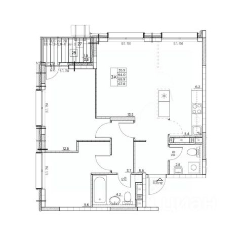 Подземный паркинг с лифтом до квартиры Продам 3-комнатную квартиру с отделкой от застройщика в районе Ленинский в городе Владивосток.