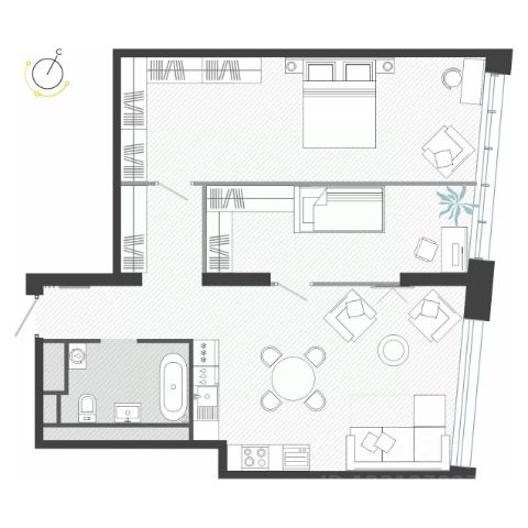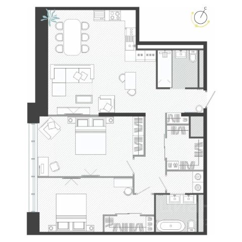 Более 100 уникальных планировочных решений — двухуровневые квартиры, с отдельном входом и патио, с приватными террасами, двухэтажные со вторым светом, функциональные студии, евроформат с кухней гостиной, с рабочим кабинетом и др.