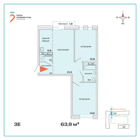 Продаётся 3-комнатная квартира в строящемся доме (Дом 2), срок сдачи: I-кв. 2027, общей площадью 63.9 кв.м., на 3 этаже. "Пять элементов" - современный жилой комплекс в пригороде Владивостока. Жилой комплекс "Пять элементов" - найди свой элемент счастья. Счастье - это моменты, из которых строится жизнь. Застройщик предусмотрел всё: прогулочные зоны для каждого, квартиры с террасами, white box в каждой квартире и многое другое.
