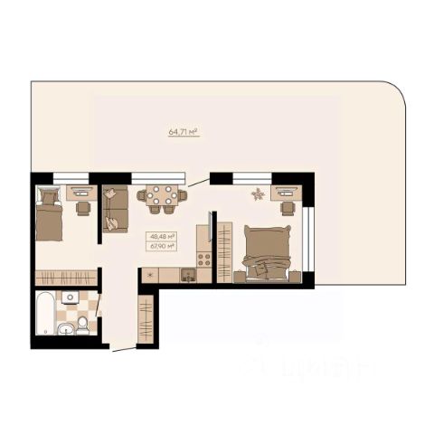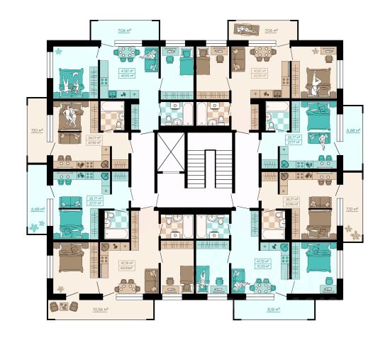 Квартиры формата Smart Comfort + (смарт комфорт +) площадью от 32 кв. м до 136 кв. м предоставляют свободу в реализации планировочных решений, а высота потолков 2,7 м с увеличенными панорамными окнами 2,45 м обеспечивают высокий уровень естественного освещения и открывают завораживающий обзор на лесной массив загородной местности.