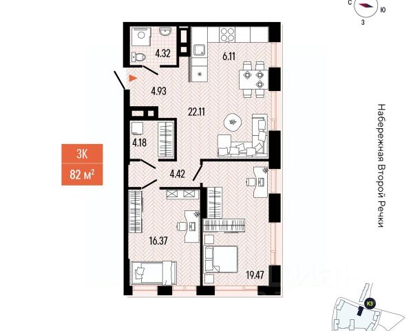 STARK навсегда изменит карту Владивостока, как и ваши представления о недвижимости бизнес-класса. 7 башен переменной этажности возвысятся над городом в исторически значимом районе Второй речки. Вас ждёт бескомпромиссный комфорт с индивидуально подобранными застройщиком резидентами коммерческих пространств, первая в городе 2-уровневая набережная вдоль русла Второй речки и 58 200 квадратных метров паркового благоустройства в рамках глобального редевелопмента территории. А ещё: внушительный выбор функциональных и просторных планировочных решений, предусматривающих возможность самостоятельного зонирования площади и реализации любых дизайнерских решений в соответствии с индивидуальными потребностями семьи, доступны варианты недвижимости с 2 санузлами; высокие 3-метровые потолки и витражное остекление, обеспечивающие высокий уровень естественного освещения пространства квартиры; умопомрачительные панорамные виды на город с сопками на горизонте, благоустроенную прогулочную набережную вдоль русла Второй речки, водную акваторию Амурского залива; высокая транспортная доступность, расположение в непосредственной близости от главной дорожной развязки Второй речки "Автовокзал Кольцо Багратиона, Проспект 100-летия Владивостока Фабрика Заря" (350 м); индивидуально подобранные застройщиком резиденты коммерческой недвижимости, с целью достижения оптимального баланса между общественными пространствами, заведениями и сервисами, на территории квартала: детский сад, медицинский центр, аптека, SPA-комплекс, салон красоты, гипермаркет, магазины, рестораны, кафе, булочная-кондитерская; развитая социальная инфраструктура микрорайона, в пешей доступности: частные детские сады и школы, входящие в городские рейтинги, медицинские центры, стоматологические клиники, фитнес-клубы, торговый центр, гипермаркеты, рестораны, аптеки, зоомагазины, химчистка и заведения сферы услуг, обслуживающие все потребности горожан; приватное благоустроенное пространство без машин для отдыха на внутренней стилобатной части комплекса с прогулочными зонами, детскими и спортивными площадками, куда могут попасть только жители квартала и их гости; закрытая охраняемая территория, контроль доступа по биометрии, видеонаблюдение по всему периметру с системой распознавания лиц, консьерж-сервис в лобби, лапомойка и колясочная; 2-уровневый крытый паркинг в стилобате здания с машино-местами увеличенной площади до 27,56 кв. м и прямым доступом к лифтовой зоне; индивидуальные келлеры на -1 и 1 уровнях комплекса для хранения сезонных вещей и спортивного инвентаря площадью до 49,77 кв. м; 5 грузопассажирских лифтов в каждой башне с возможностью дистанционного вызова и грузоподъемностью 630 кг, 1000 кг, 1350 кг; отдельные шахты для монтажа и обслуживания кондиционеров, скрытые за фасадом, чтобы с эстетической точки зрения не портить облик башен. Открыты продажи в башнях 1, 2 и 3. Продам 3-комнатную квартиру в новостройке в районе Советский в городе Владивосток.