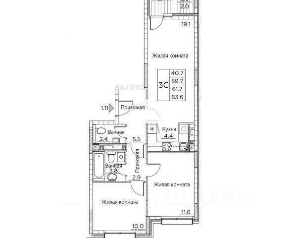 Общая площадь квартиры — 62 кв. м, этаж 4 из 18.