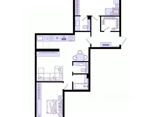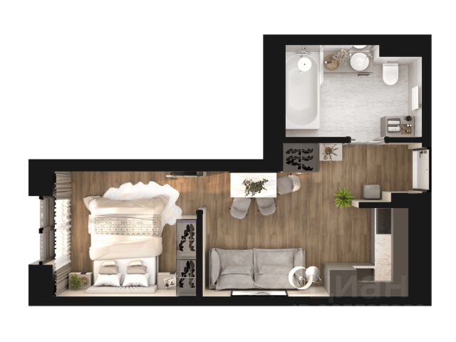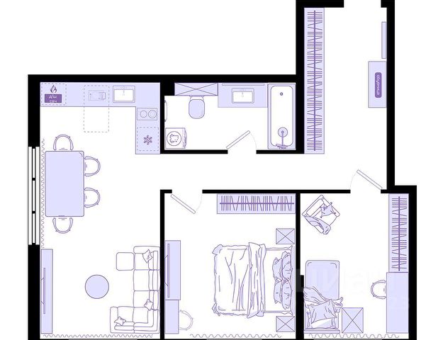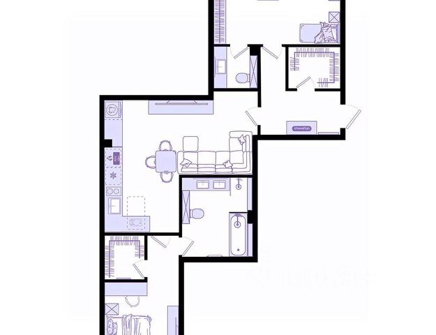 - Квартира с полностью готовой современной отделкой в светлых тонах.