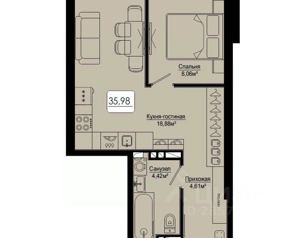Общая площадь квартиры — 62 кв. м, этаж 5 из 18.
