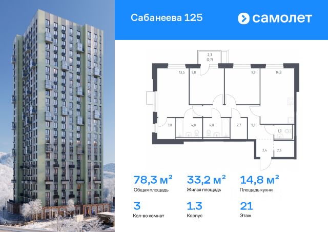 Продаётся 3-комн. квартира площадью 69,61 кв.м на 19 этаже 24 этажного дома (Корпус 2, Секция 2) проекта ПИК Снежный парк. Светлый просторный подъезд на уровне земли, функциональная планировка, большие окна, предчистовая отделка. Жилой квартал "Снежный парк" возводится в развитом микрорайоне Владивостока - Снеговой Пади. Рядом уже есть всё для комфортной жизни: 2 школы, детская и взрослая поликлиники, торговый центр и магазины. Проект будет состоять из 7 корпусов, высота которых от 24 до 29 этажей. Благодаря низкой плотности застройки жители будут чувствовать себя комфортно. За счёт переменной этажности в квартиры будет попадать ещё больше естественного света. Из окон последних этажей будет открываться панорамный вид на Амурский залив и лес. В квартирах предусмотрены большие окна, застеклённые балконы и лоджии - будет светло и уютно даже зимой. В жилом квартале появится уникальное общественное пространство с пешеходным бульваром и зонами для отдыха. На первых этажах откроются кафе, магазины и полезные сервисы, куда можно спуститься за горячим кофе или свежеиспечённым хлебом. Из каждого дома будет выход в уютный двор-парк с современными детскими и спортивными площадками. Здесь мы посадим цветы и деревья: будет приятно отдыхать или почитать книгу. Артикул 785614 (Застройщик ООО "СЗ ФОРМУЛА-ДВ") Продается 3-комнатная квартира с балконом в районе Первореченский в городе Владивосток.