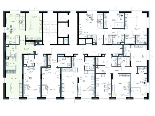 В квартире есть вся необходимая мебель: двуспальная кровать в спальне, большой диван в зале, кресло-реклайнер у окна, где можно расслабиться и почитать книжку или выпить бокал вина, две кровати в детской, зонированные на разные стороны, если дети разного пола - они даже друг друга не увидят, встроенные шкафы для хранения вещей и гардеробная. В коридоре обувница и шкаф.