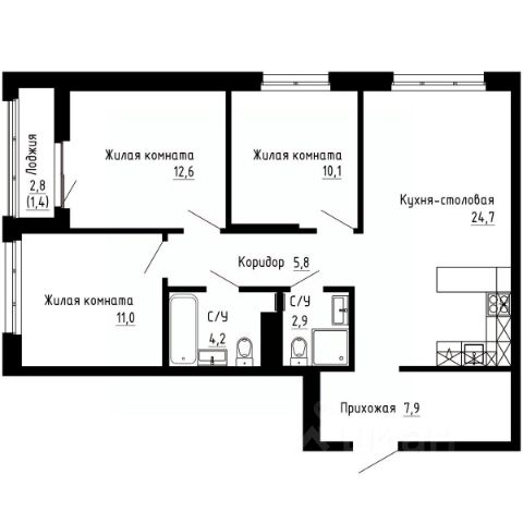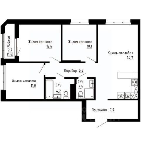 Продаётся 3-комнатная квартира в строящемся доме (Дом 2А), срок сдачи: I-кв. 2029, общей площадью 79.7 кв.м., на 4 этаже. Новый жилой комплекс "7Я" от застройщика "Новый Дом ДВ" расположен по адресу город Владивосток, Иртышская улица.