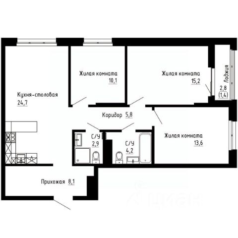 Продаётся 3-комнатная квартира в строящемся доме (Дом 2А), срок сдачи: I-кв. 2029, общей площадью 80.6 кв.м., на 6 этаже. Новый жилой комплекс "7Я" от застройщика "Новый Дом ДВ" расположен по адресу город Владивосток, Иртышская улица.